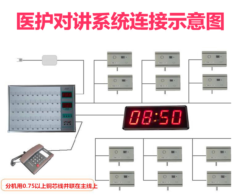 雙向呼叫、雙工通話:分機可呼叫主機,主機也可呼叫分機,送話受話無需轉換。 主機多功能顯示:主機可顯示呼叫床位號、序號、萬年歷、護理等級。 多級護理設置:可根據病員病情任意設置高、低級護旦床位,并在主機上有指示燈顯示。 高級優先:高護理級別病員的呼叫可以中斷低護理級別病員的通話,并有特別音樂提示。 宣教廣播、話筒廣播:可接入錄音機等信號源作宣傳教育廣播,或使用話機作找人和喊話功能。(需裝廣播機) 無中斷呼叫:無論在待機、振鈴等狀態只要有分機呼叫主機均接收并提示。 呼叫存儲:分機呼叫而主機無人處理時,主機將該分機號存儲。 振鈴音量調節:主機設有音量調節旋鈕,以適應不同場合要求。 故障自栓報警:當系統出現故障時主機顯示窗口及顯示屏均能給出數字顯示,并伴有聲響報警提示。