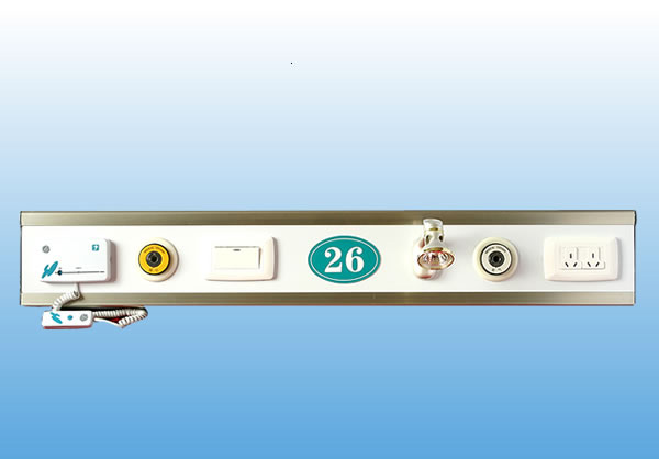 醫(yī)用設(shè)備帶固定在病房床頭上方的墻壁上,用來安裝電源插座、呼叫按鈕、電源開關(guān)、中心供氧及負壓吸引等系統(tǒng)的氣體閥等設(shè)備,另外也可固定其它一些醫(yī)療設(shè)備,如輸液裝置、其它報警裝置等。