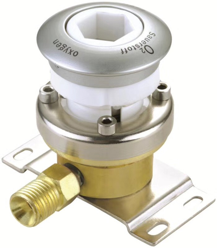 氣體終端氧氣、吸引、空氣、二氧化碳、笑氣、氮氣采用不同形狀和標牌顏色區分,連接方式為球帽、焊接、卡套、管套等,同時插頭和插座各種氣體配有專用接口,底座與管道連接永久連接或不可互換的專業性連接,特別是這種III型,裝有維修閥系統,維修方便。